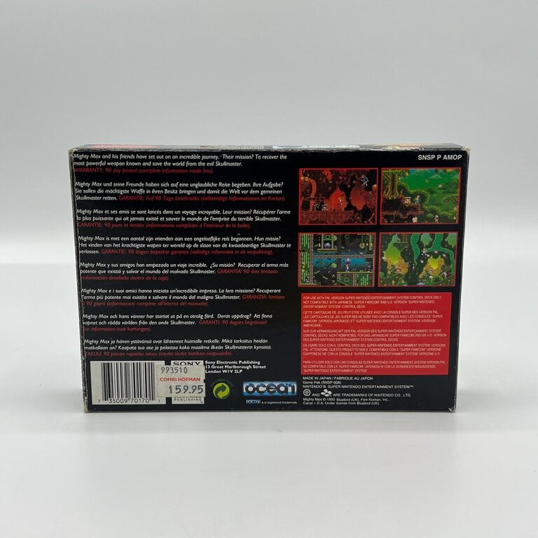 The Adventures of Mighty Max is een actieplatformer gebaseerd op de gelijknamige tekenfilm, waarin je als Max door verschillende dimensies reist om monsters te verslaan en de wereld te redden. De game combineert platformactie met verkenning en puzzels, waarbij je nieuwe gebieden ontdekt en vaardigheden gebruikt om verder te komen. Met zijn donkere sfeer en afwisselende levels biedt het een uitdagende en eigenzinnige ervaring op de SNES.