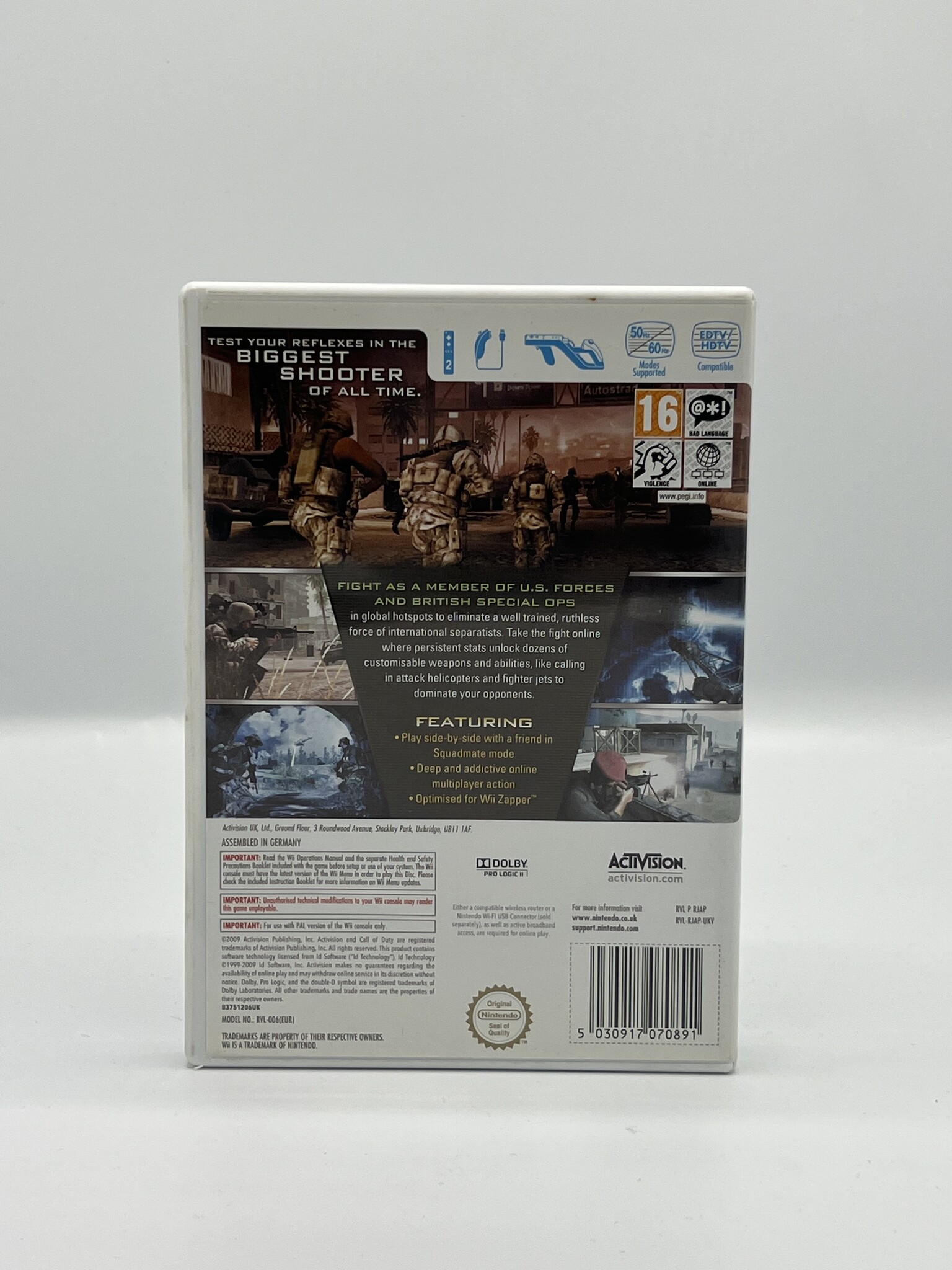 Beleef de moderne oorlogsvoering van de iconische shooter met motion controls die elke beweging intensief maken. Vecht in wereldwijde missies vol spanning, stealth en explosieve actie.