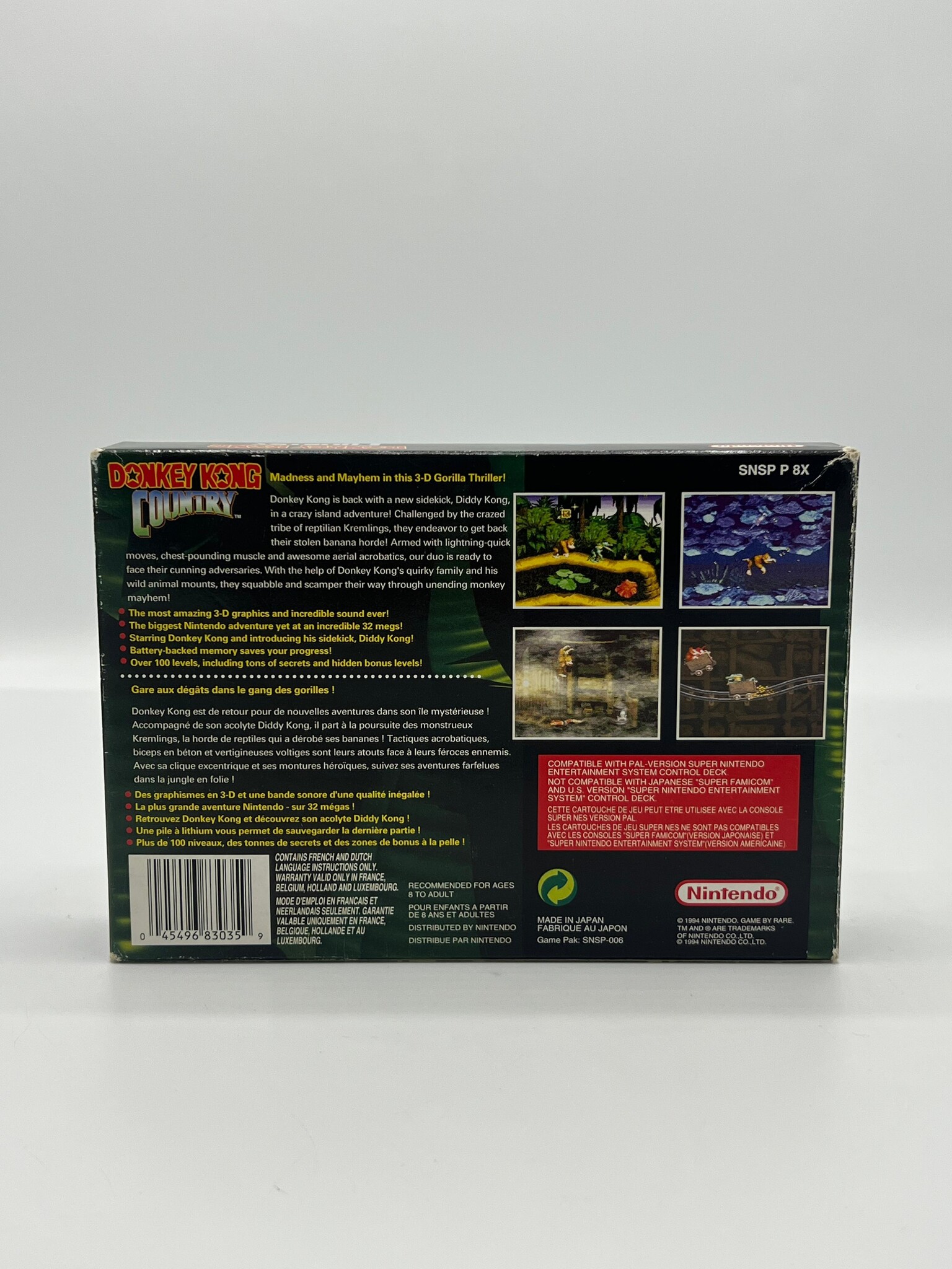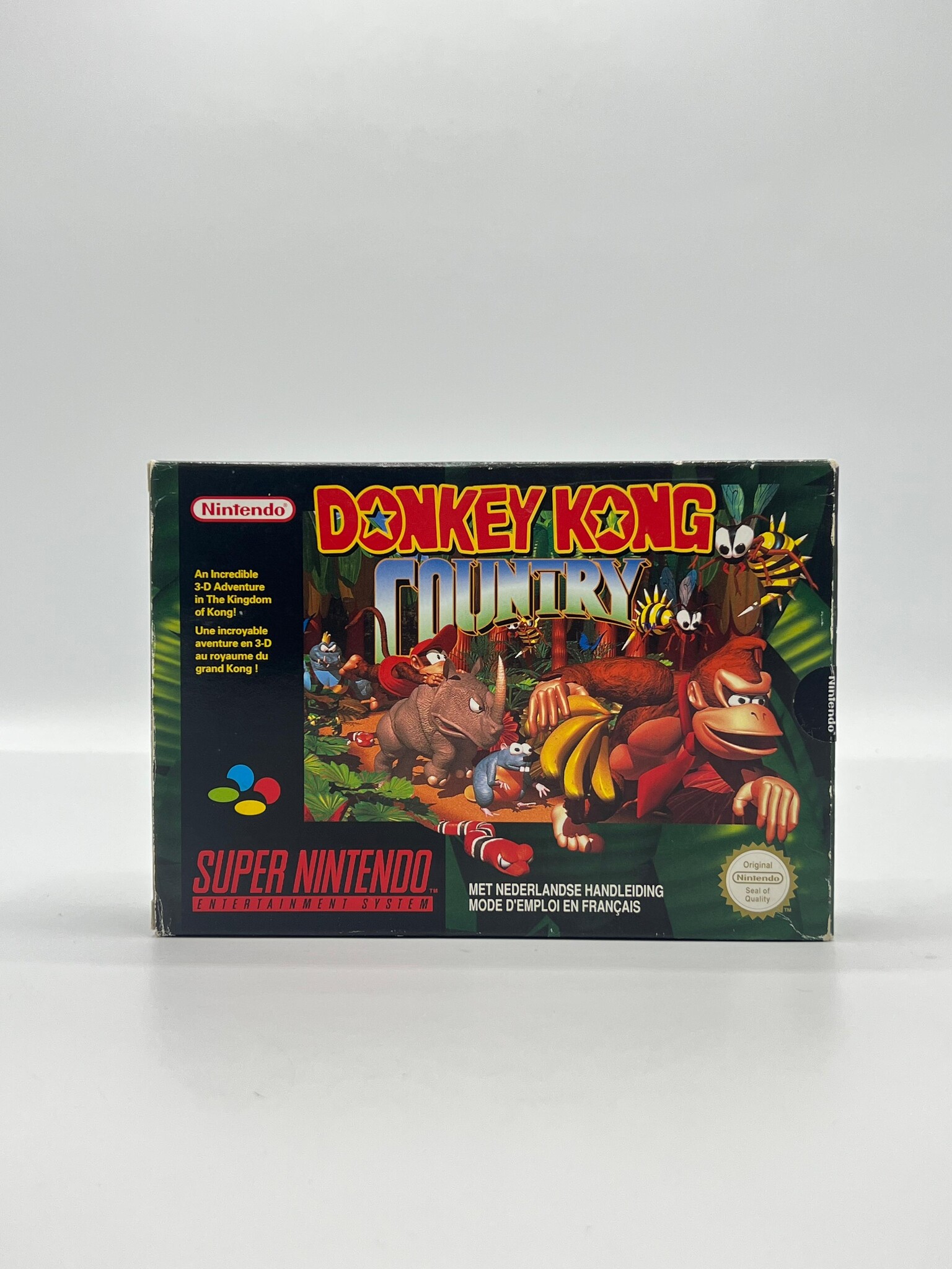 Donkey Kong Country zette bij release een nieuwe standaard op de SNES met zijn revolutionaire pre-rendered graphics, sfeervolle soundtrack en strakke platformgameplay. Samen met Diddy Kong trek je door jungles, grotten en fabrieksterreinen om Donkey Kongs bananenvoorraad terug te veroveren van King K. Rool. De combinatie van visuele pracht, uitdagende levels en tijdloze speelbaarheid maakt dit een van de meest iconische platformers ooit gemaakt.