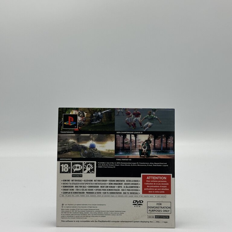 God of War introduceert je aan Kratos en zijn meedogenloze reis door de Griekse mythologie, met brute gevechten, epische eindbazen en filmische presentatie. Deze demo disc geeft een krachtige eerste indruk van de snelle combat, de schaal van de omgevingen en de rauwe sfeer die de serie zo iconisch hebben gemaakt. Voor actie-fans en verzamelaars van PS2-demo’s is dit een sterk promostuk van een titel die een hele franchise heeft gedefinieerd.
