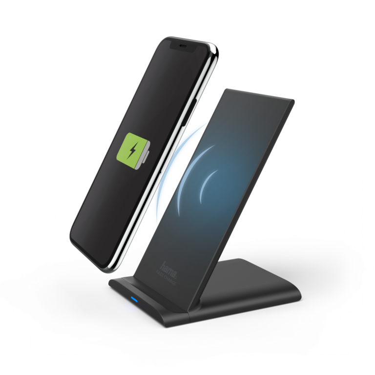 - Dankzij 2 spoelen kan de smartphone zowel in staand als liggend formaat worden opgeladen