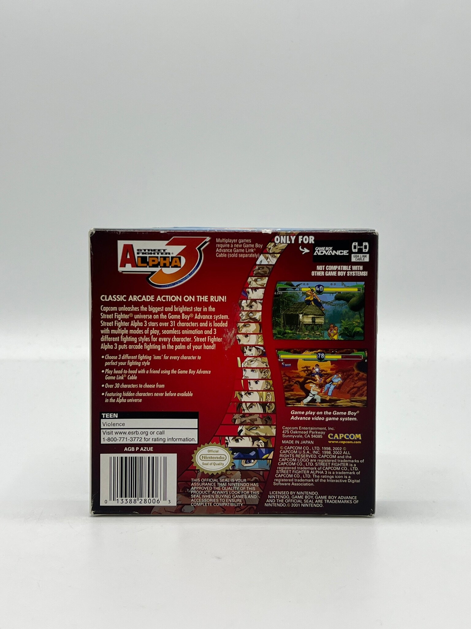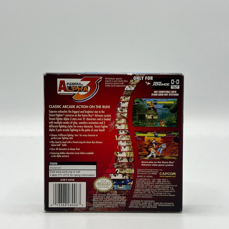 Street Fighter Alpha 3 brengt de legendarische vechtreeks naar de Game Boy Advance met een indrukwekkend complete portable versie van de arcadeklassieker. Met een grote selectie iconische vechters, snelle gameplay en verschillende vechtstijlen biedt de game verrassend diepe fighting-actie voor een handheldtitel. Dankzij de strakke besturing en uitgebreide content geldt dit als een van de sterkste fighting games op de Game Boy Advance.