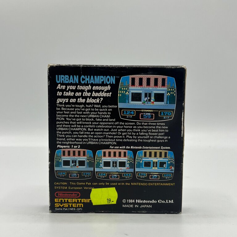 Urban Champion is een van de eerste vechtgames van Nintendo, waarin je het opneemt tegen een tegenstander in straatgevechten. Duw je tegenstander richting een open riool, ontwijk aanvallen en let op de politie die het gevecht kan onderbreken. De game draait om timing en positionering, met een simpele maar verslavende opzet.